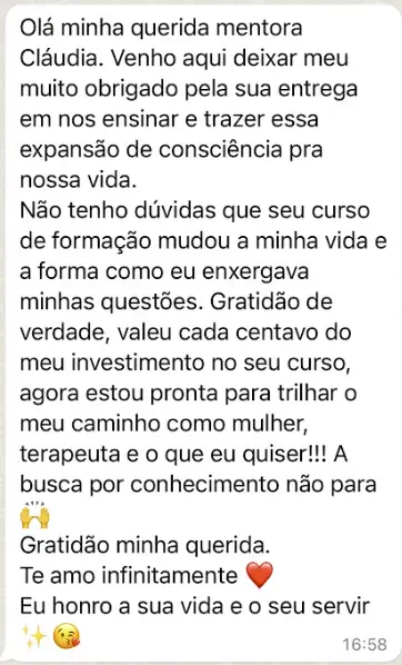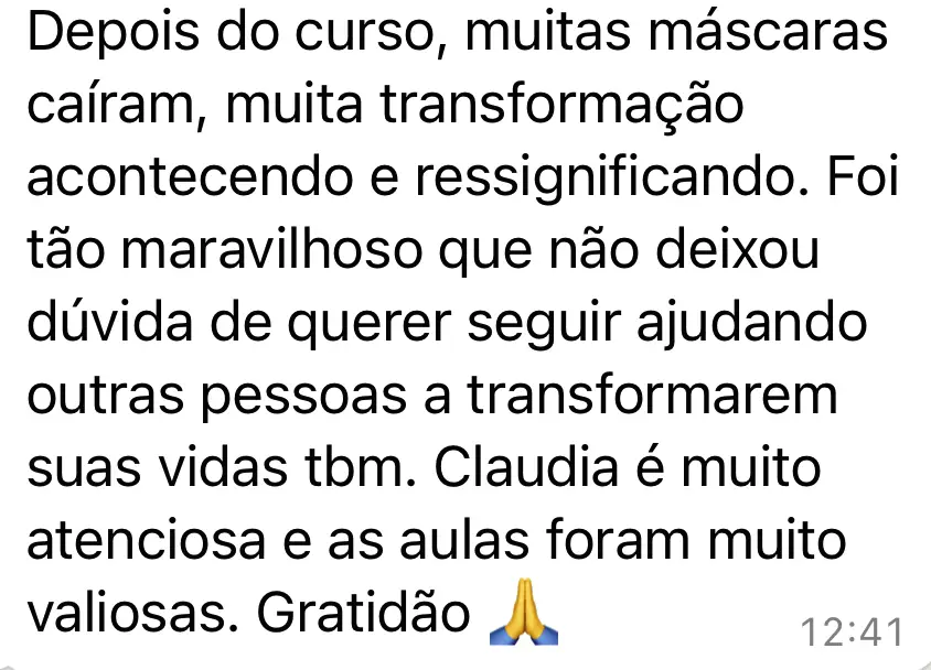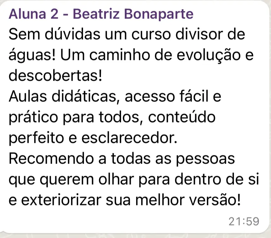 Até hoje eu nunca vi um treinamento com resultados como esse, você será conduzida a uma total reconstrução da sua vida.