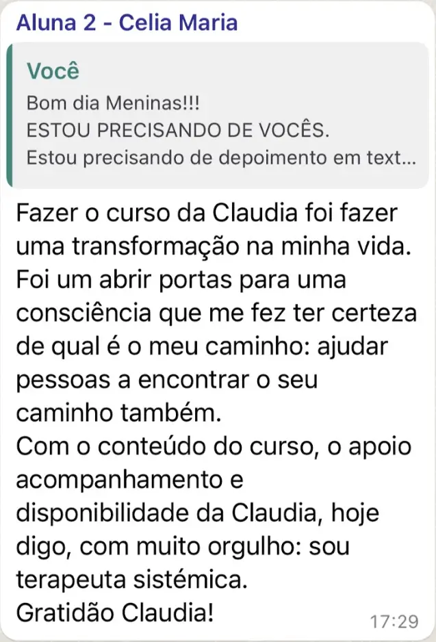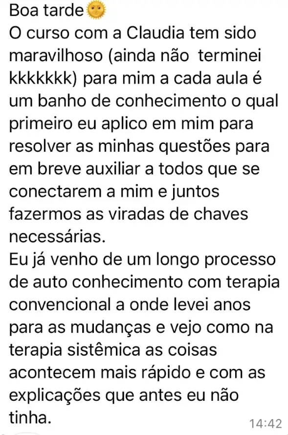 É por isso que grande parte dos meus alunos já foram formados por algum curso de constelação familiar mas busca pelo meu.